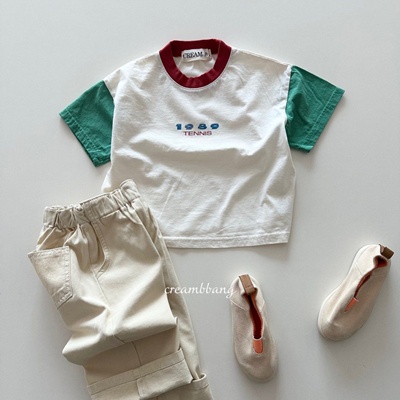 크림빵.1989소매배색티
