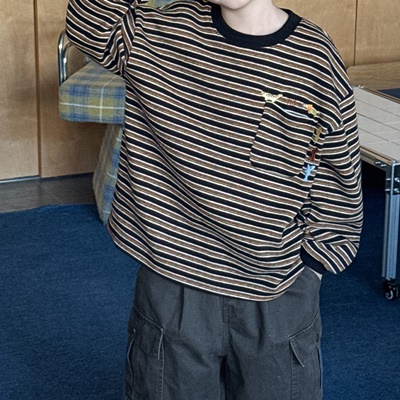비다이어리.자수포켓단가라티셔츠