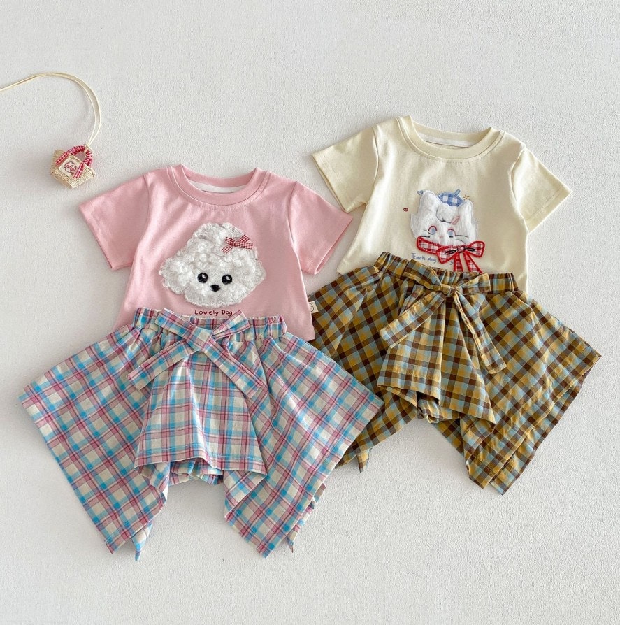 [수입]체크치마바지셋